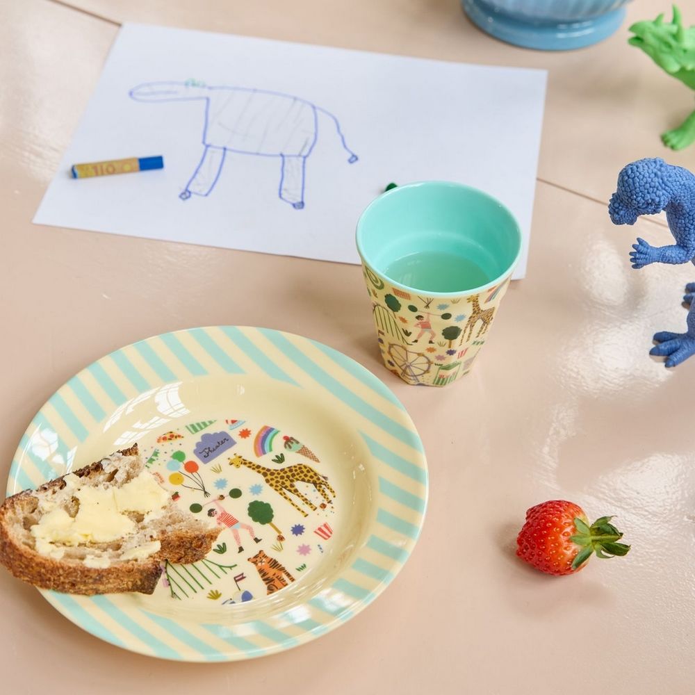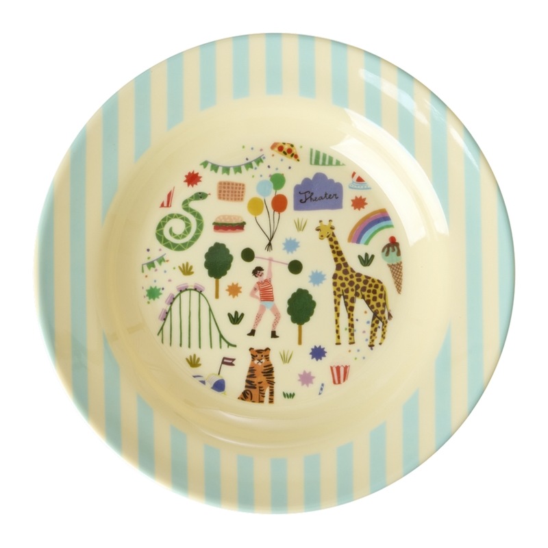Cette assiette creuse au motif “fête foraine bleu” de chez Rice est parfaite pour les repas des plus petits avec son rebord bien large pour éviter les débordements.