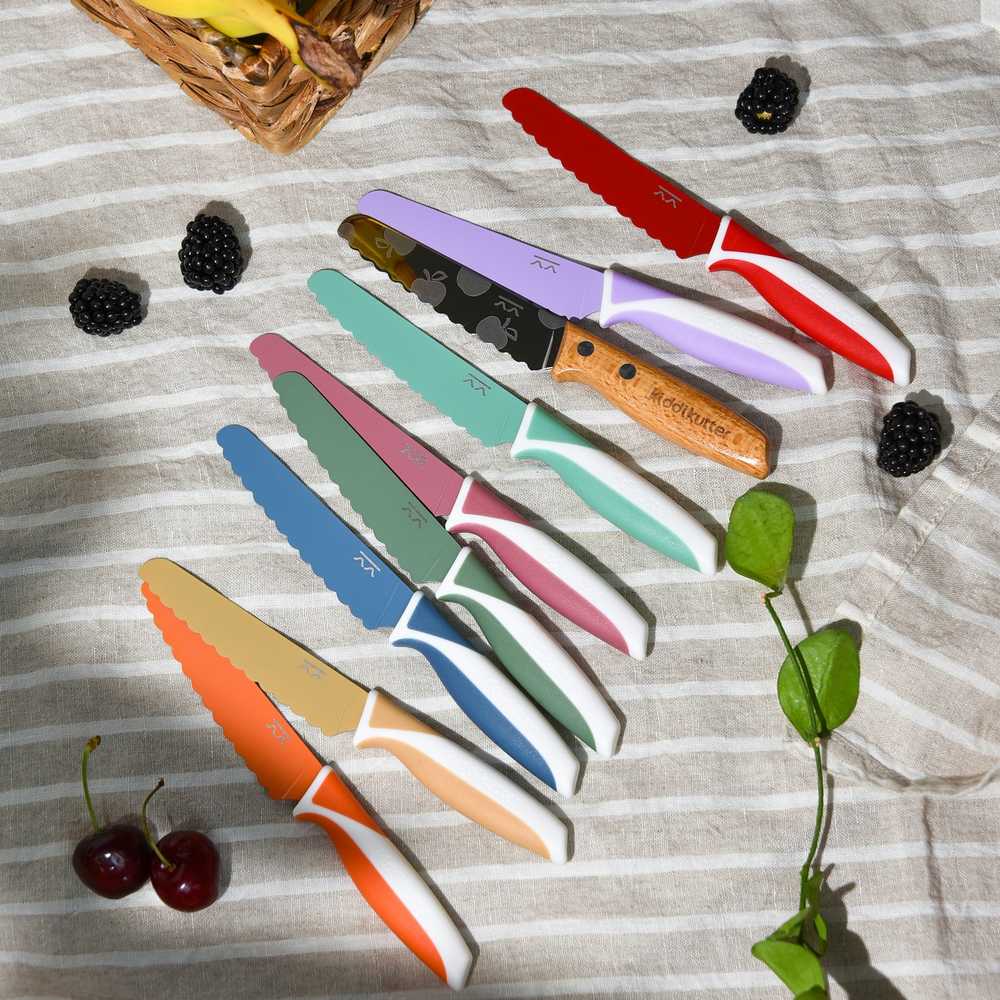 Ce couteau d’apprentissage “pêche” de chez Kiddikutter en acier inoxydable est idéal pour couper fruits et légumes et participer à la préparation des repas !