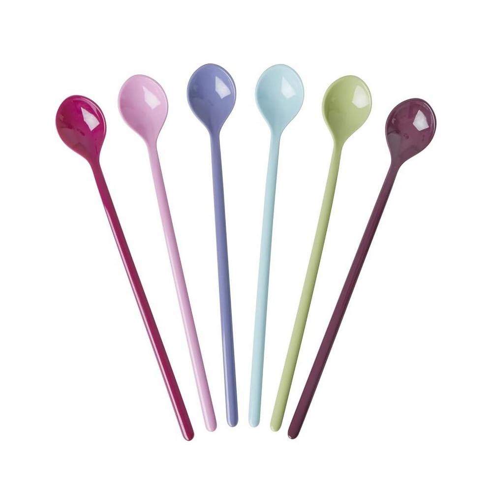 Ce lot de 6 cuillères longues en mélamine du thème “prune” de chez Rice est parfait pour les repas de bébé et plaira aussi aux plus grands !